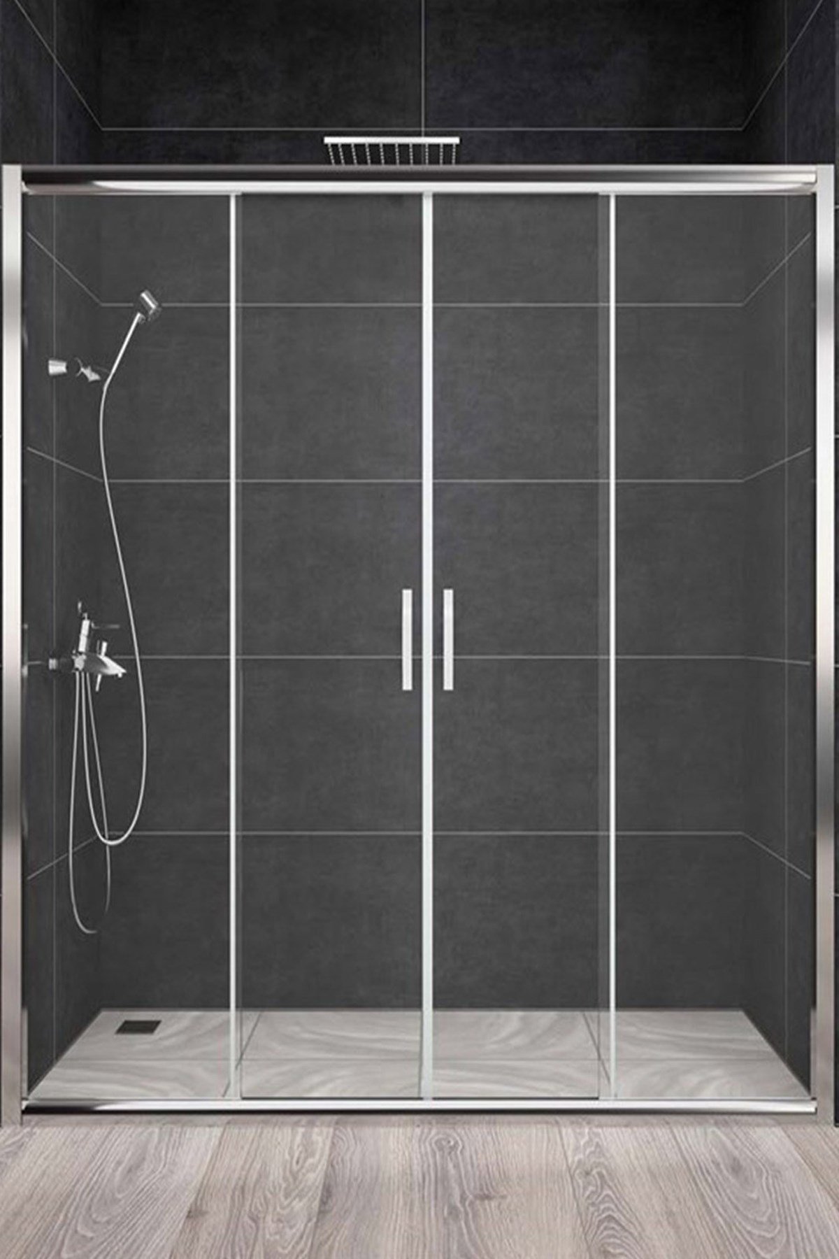 *150 CM. DEN FAZLA OLAN KABİNLERİN CAMLARI 2 SABİT CAM + 2 KAYAR CAMDIR.